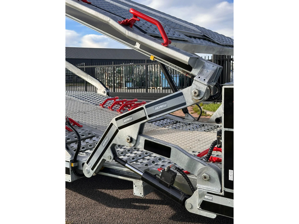 Deze volledig nieuwe Aksoylu AKC 62-NM 6-Lader is direct inzetbaar en ideaal voor iedereen die efficiënt tot 6 voertuigen wil vervoeren. Dankzij de extra hefarm op het middendek is deze trailer ook zeer geschikt voor hogere voertuigen.